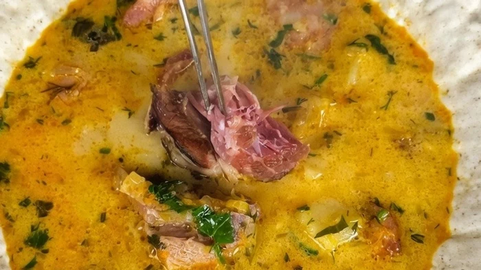 Základem je dlouhý vývar. Uzená žebra nechte probublávat v hrnci klidně dvě hodiny. Tím získáte nejen plnohodnotný základ, ale i maso, které se později samo rozpadne. Do tohoto vývaru pak přijde nakrájená zelenina a brambory.
