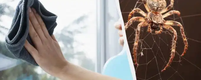 Na čistá okna bez šmouh a odpuzování pavouků použijte směs vody, octa, prostředku na nádobí a pár kapek mátového esenciálního oleje. Ocet a prostředek