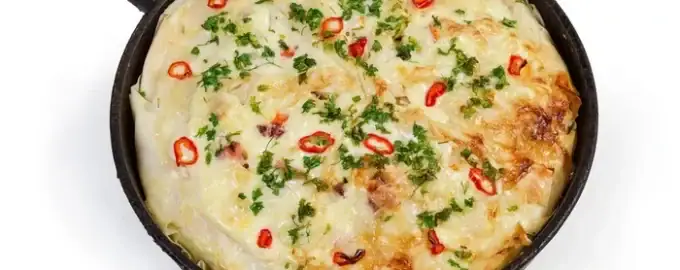 Rychlý a chutný koláč připravíte bez zdlouhavého hnětení těsta. Stačí použít obyčejnou pitu jako základ, smíchat s vejci, sýrem a bylinkami, a smažit na pánvi.